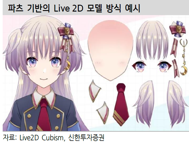 ANYCOLOR는 Live 2D 기술의 선제적 도입을 통해 버튜버 생태계의 트렌드를 주도하였다. 초기 버튜버 산업은 키즈나 아이와 같은 3D 사전녹화 콘텐츠가 주류였으나, 높은 제작비와 낮은 콘텐츠 주기로 인해 수익성과 확장성에 한계가 있었다.