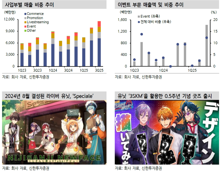 커머스 부문은 선주문 기반의 예약 생산 방식을 채택해 재고 리스크를 최소화하고, 희소성에 기반한 프리미엄 효과도 확보하고 있다. 또한, 라이버별 생일 및 기념일 굿즈의 반복 출시는 팬 1인당 고객 가치를 극대화하고 있다.