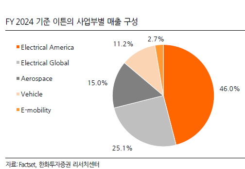 Eaton은 전력 관리 회사로, 전기, 유압, 항공우주, 차량 및 eMobility 부문에서 다양한 제품과 서비스를 제공합니다. 주요 사업 부문은 다음과 같습니다: