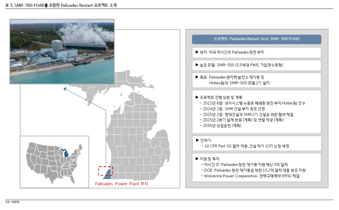 Palisades를 초도호기(FOAK: First of a Kind) 배치 장소로 결정한 것은 매우 현실적이고 실현 가능성이 높은 전략으로 판단되는데