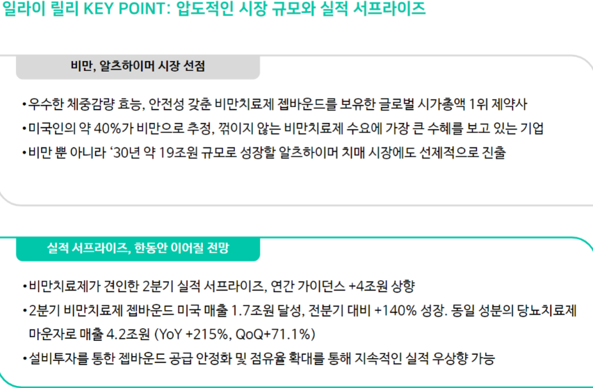 차세대 파이프라인 전략: 레타트루타이드 (Retatrutide, 삼중 작용제): 글루카곤 기전을 추가하여 현존하는 약물 중 가장 높은 수준의 체중 감량 효과를 보임. 고도 비만 환자군에서 혜택-위험 프로파일을 집중적으로 평가할 예정이며, 첫 데이터는 올해 말 발표 예정.
