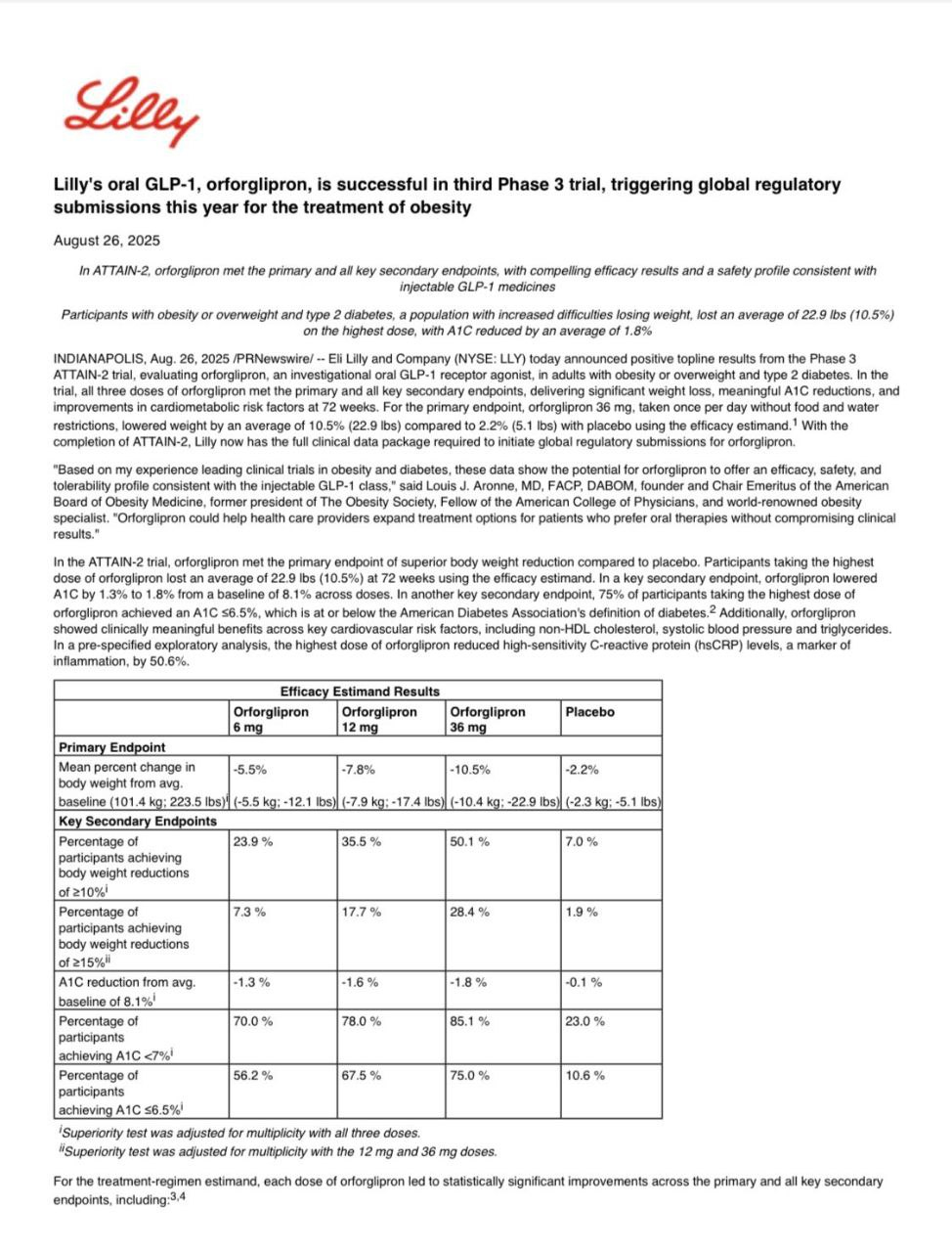 2025-08-27,‘Lilly 경구용 GLP-1 치료제 오포글리프론, 3상 임상 성공으로 올해 비만 치료제 글로벌 허가 신청 예정’