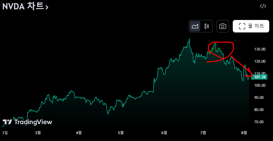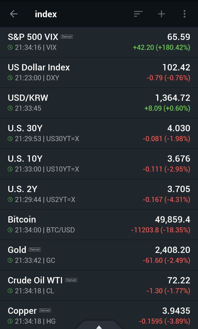 이걸 웬걸 아침 8시부터 미국 나스닥 선물이 -2%로 시작하질 않나, 아침 프리장 오픈부턴 엔비디아 x2가 -20%를 쳐맞아버리는등 손쓸 방법이 없었다