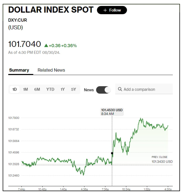 달러인덱스도 PCE 발표 이후 상승해 강세로 마감함