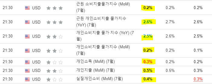 - PCE 7월 개인소비지출물가는 직전 발표와 동일해 예상과 부합함