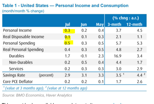 개인소득(Personal Income)은 0.3%로 전월 대비 높았고, 인플레이션과 세금을 감안한 실질 가처분 개인소득(Real Disposable Income)은 0.1% 증가함,