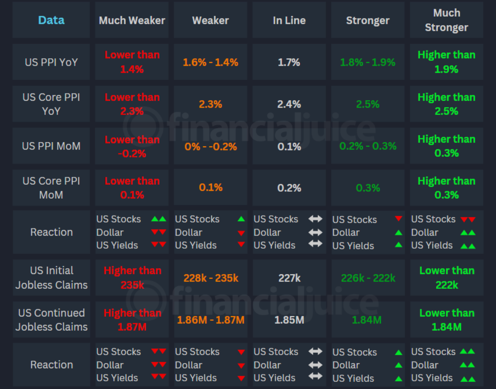 헤드라인이나 근원 PPI는 모두 전월 대비로는 상회. 에너지 가격 하락으로 상품물가는 안정되었으나(0%), 서비스 부문이 상승(0.4%)한 영향. 호텔 비용이 4.8% 급등한게 가장 큰 문제였는데 이는 전일 CPI와 유사한 부분.전반적으로 아직도 인플레이션이 끈적하단 느낌을 주며 25bp 인하 재료로 사용됨. 지표 발표 후 주식시장은 급격히 붕괴되진 않았지만 반도체 등을 중심으로 약세를 보였고, 채권 금리는 급락 후 다시 반등하며 큰 변동성을 보이지 않았음