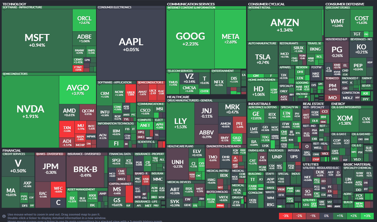 미 증시는 DOW +0.58%, S&P 500 +0.75%, NASDAQ +1.00%, Russell 2000 +1.29%로 상승 마감. 개장 전 발표된 ECB 의 25bp 예금금리 인하 결정과 경기지표들로(PPI, 신규실업수당청구) 전일 CPI 발표 이후 후퇴했던 빅컷 기대감이 일부 회복. 여기에 기술주 반등을 이끌어냈던 골드만삭스의 커뮤나코피아 2024 에 이어 금일 또한 백악관에서 열린 정부관료들과 AI 리더들(엔비디아, 마이크로소프트, 구글, OpenAI 의 CEO 들)의 회동에 테크 업종 전반의 긍정적 센티 확산.