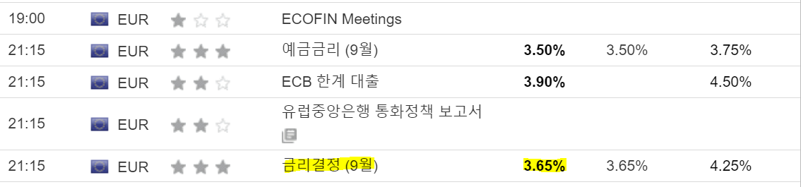 ECB 9월 ECB 통화정책 회의에서는 예금금리를 기존 3.75%→3.5%로 25bp 인하 결정하며 시장 예상치에 부합.