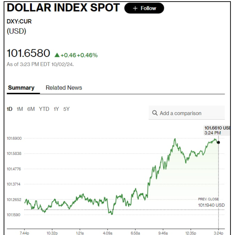 달러인덱스 또한 고용시장의 견고함으로 미국경기의 침체 가능성이 약해지면서 반등했는데, 엔화가 약세를 보인점도 주요 요인인데 이시바 총리 금리 인상 신중 발언이 영향을 미침