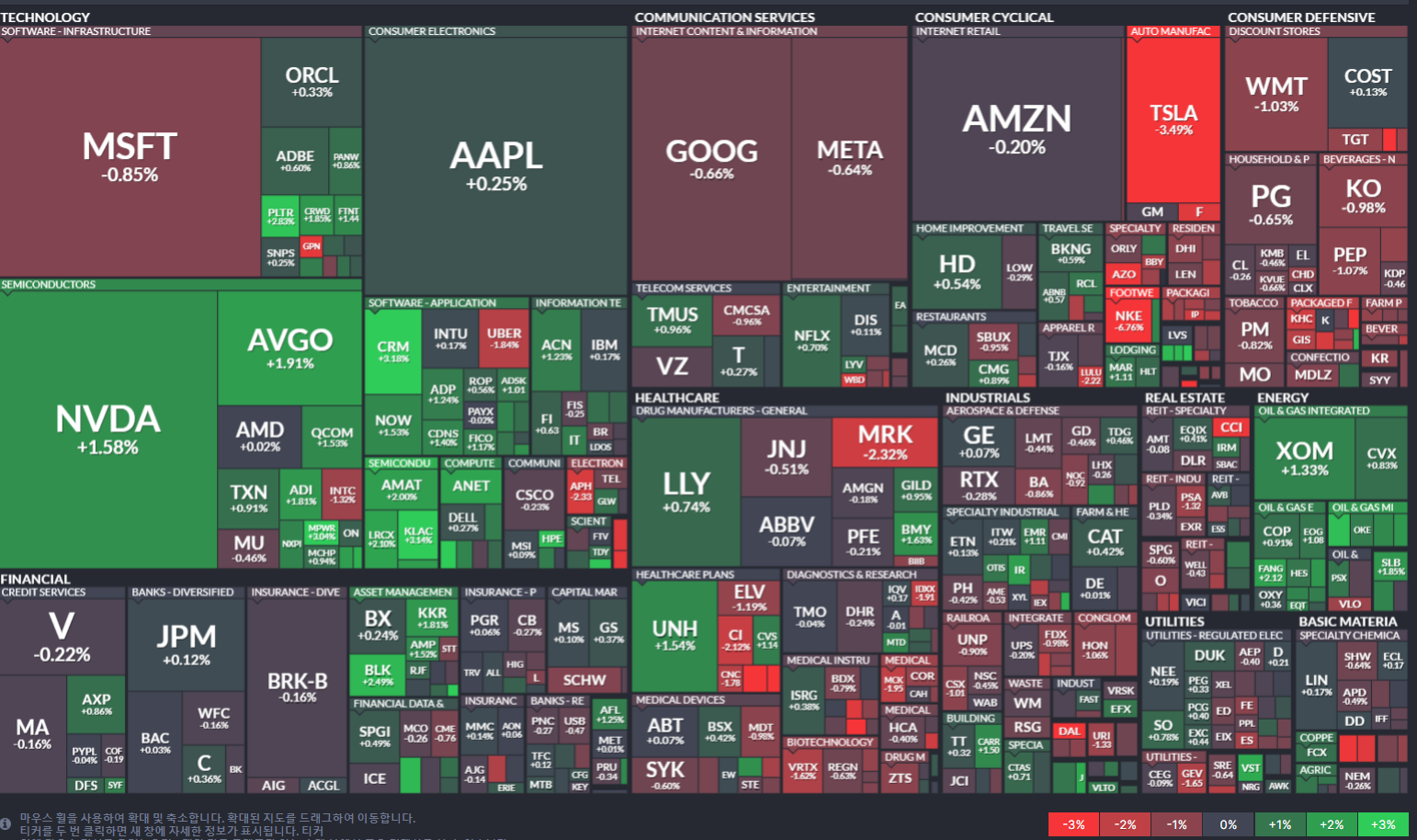 - 중국 기업들: 중국 경기부양책 효과로 중국 기업들의 주가 상승세가 계속되고 있다. JD.com(JD) +9.78%, 리 오토(LI) +9.43%, 알리바바(BABA) +4.11% 등을 기록 중이다.