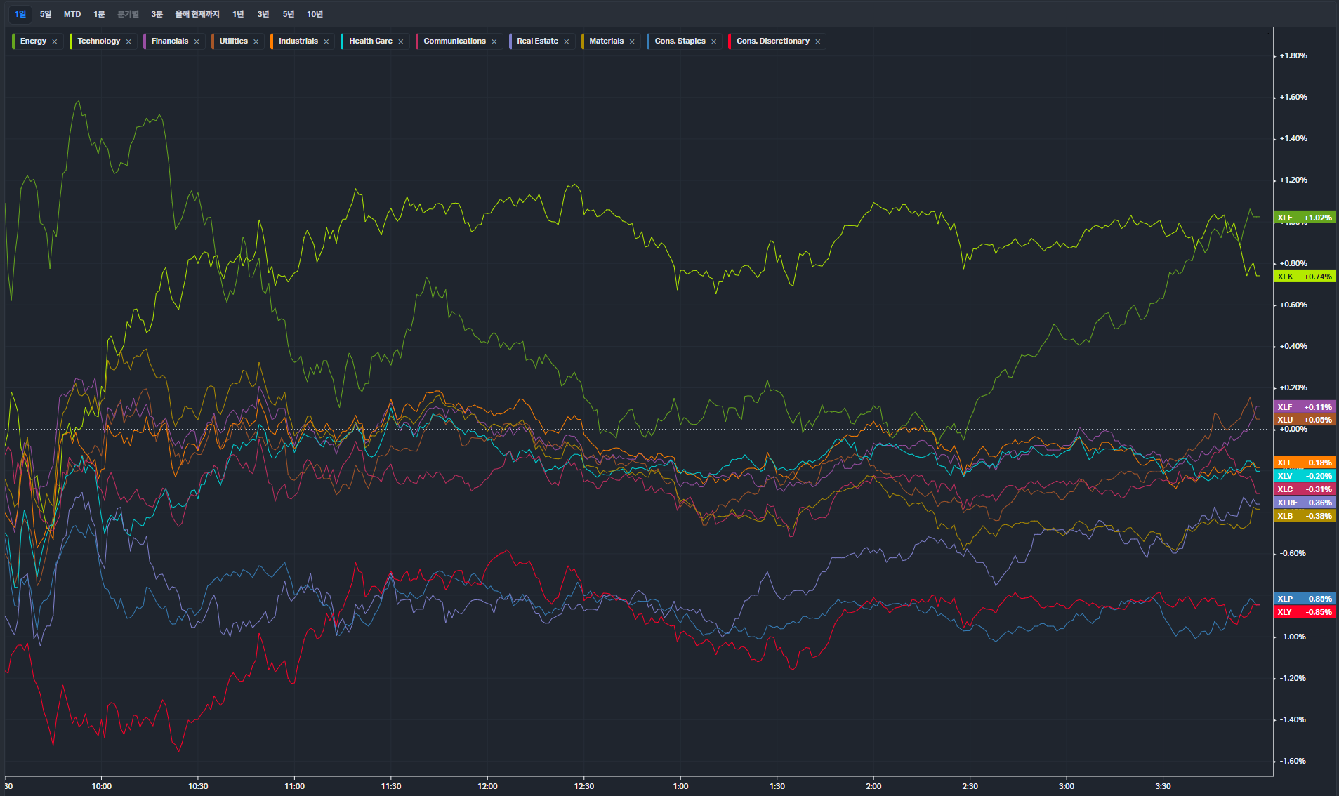 섹터별로 보면 중동의 지정학적 위험 및 중국발 경기부양 모멘텀으로 [에너지 > 기술주 > 금융]주 중심으로 상승이 강했고