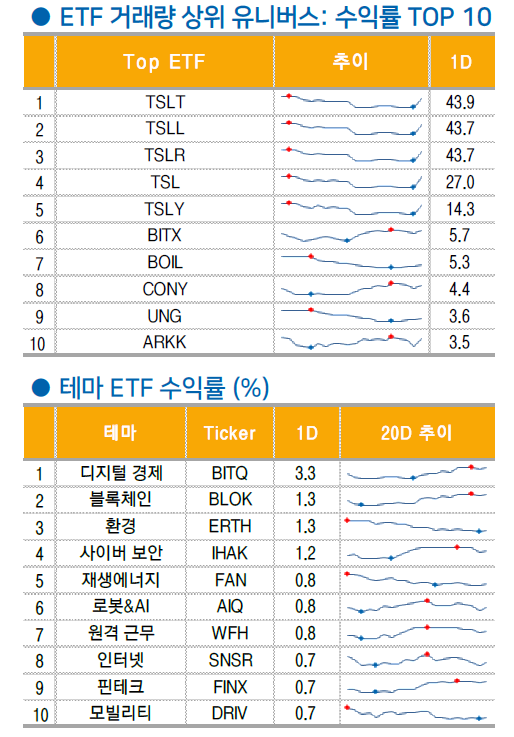 - 전일 공개된 테슬라 실적에서 GPM 회복 및 ESS 사업 성장성 등이 주목받으며 장 마감 후 주가 급등.