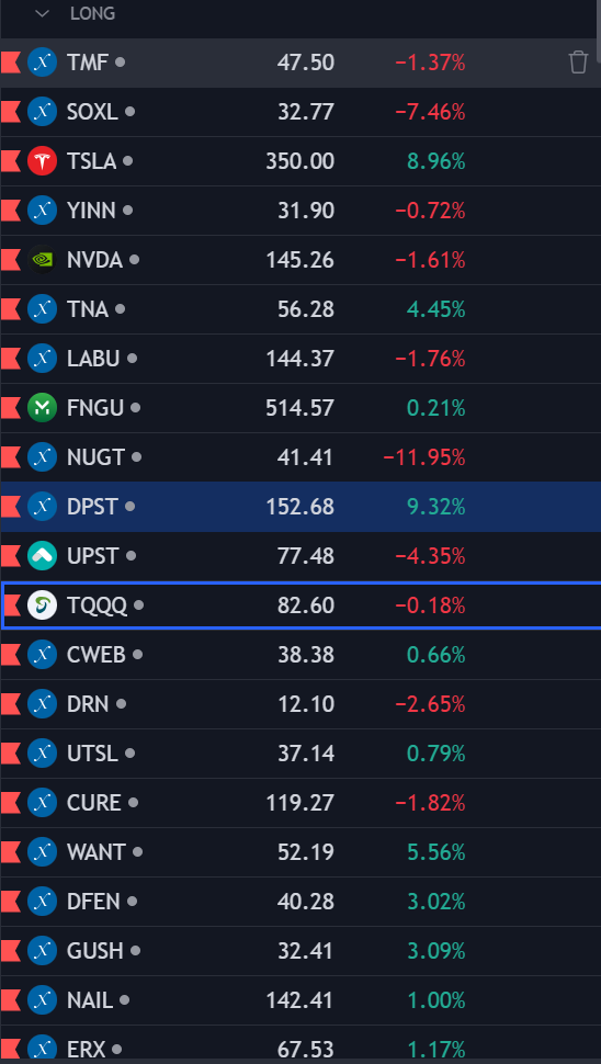 FAS, 트럼프 = 금융주 라는 이야기를 듣다보니 포트폴리오 다변화 차원에서 샀는데 +0.XX%되었길래 테슬라 사려고 [손절]침. 팔고나서 보니깐 [DPST]는 +9%던데…이는 내가 은행주 = M&A확대 = 규제 철폐 = 트럼프 집권기에 장기물 고금리 상태 유지 기대감 등이 있을것으로 생각하고 대형 은행이 수혜를 볼 것으로 생각했던것이 잘못된 생각이었을 듯. M&A 수혜라면 피인수 기업 주가가 오르고 인수기업은 떨어지는 것인데…말이지…