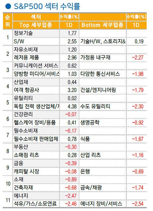 미 증시는 DOW +0.73%, S&P 500 +0.60%, NASDAQ +1.30%, Russell 2000 +0.42%로 상승 마감.