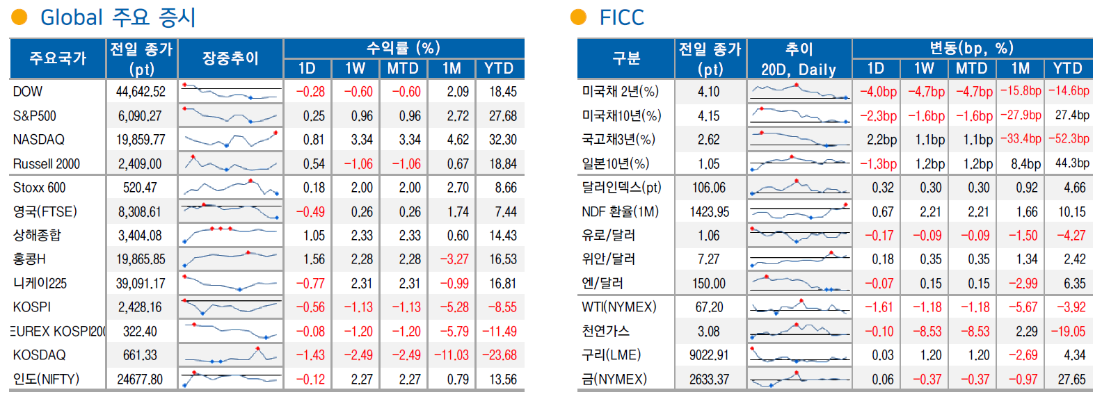 미 국채 금리는 2Y 4.1%(-4.0bp), 10Y 4.15%(-2.3bp)로 하락. 견조한 비농업고용에도 불구 민간 부분이 컨센을 하회했으며 실업률도 컨센을 상회한 점이 부각. CME Fedwatch 상 12 월 FOMC 25bp 인하 확률은 90%대에 근접.