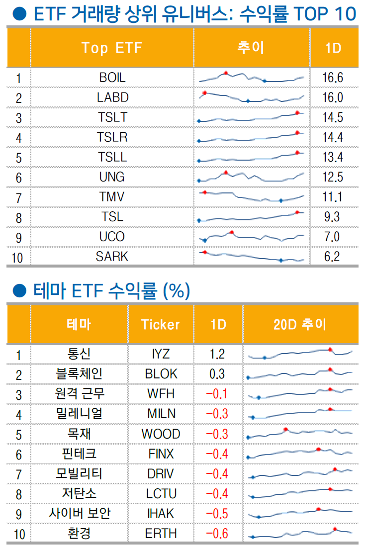 랠리를 주도했던 나스닥과 대형 기술주를 중심으로 매물 출회. 국채 금리 또한 단기물 중심으로 상승함에 따라 증시에 부담으로 작용하는 모습12 월 ETF 기준 10%가량 상승하며 증시를 주도했던 M7(MAGS,-0.8%) 기업들 전반 부진. 보합권 마감한 애플(AAPL +0.6%), 마이크로소프트(MSFT +0.13%)를 제외 모두 하락마감. 특히 양자칩 모멘텀으로 급등하던 알파벳(GOOGL -1.8%)과 $400 선을 돌파한 테슬라(TSLA -1.6%)에 매물출회 집중. 어도비(ADBE -13.7%)의 가이던스 쇼크도 AI 산업 전반에 하방압력으로 작용
