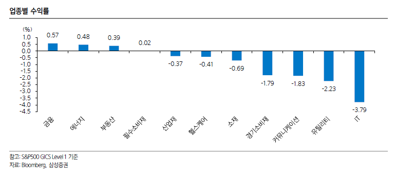 인튜이트(INTU -4.01%), 워크데이(WDAY -3.88%) 등 최근 실적 발표 후 강세를 보였던 소프트웨어 업체들도 하락.