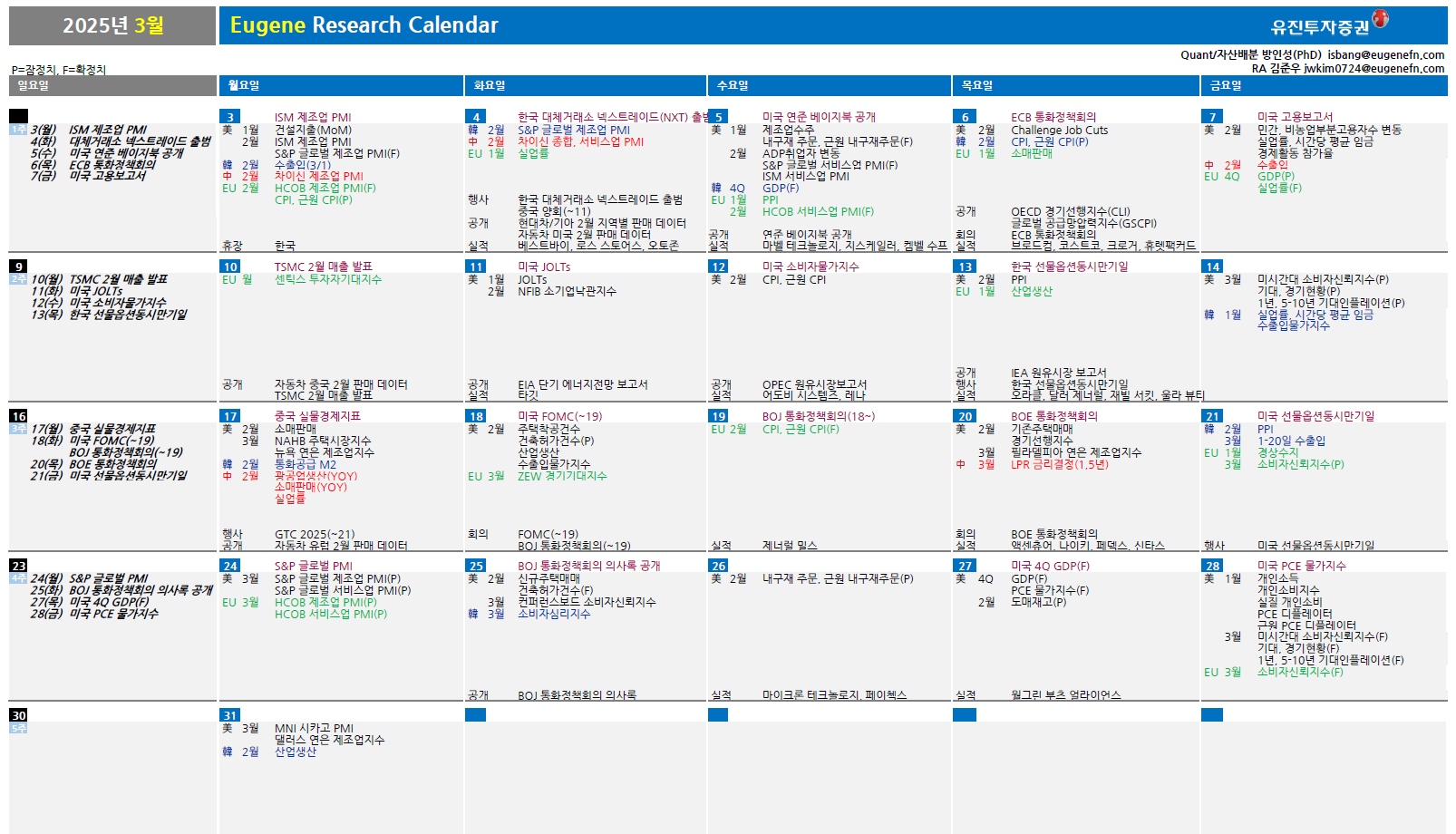 *변화요인: 고용불안, 관세 우려, 그리고 투자 심리 위축 신규실업수당 청구건수가 지난 주 발표된 24,2만 건보다 감소한 22.1만 건으로 발표됐지만 10명 이상의 해고자(구조조정)만을 취합한 캘린저 대량해고자수가 지난달 4만 9,795건보다 급증한 17만 2,017건을 기록하자 고용시장에 대한 불안이 확대. 이는 2009년 이후 가장 높은 월간 해고기록. 특히 DOGE로 인한 정부 기관 감축이 6만 2,242건을 기록한 데 따른 것으로 지난해 2월에는 151건. 이 결과 금요일 발표되는 고용보고서에 대한 불안 심리가 확대.