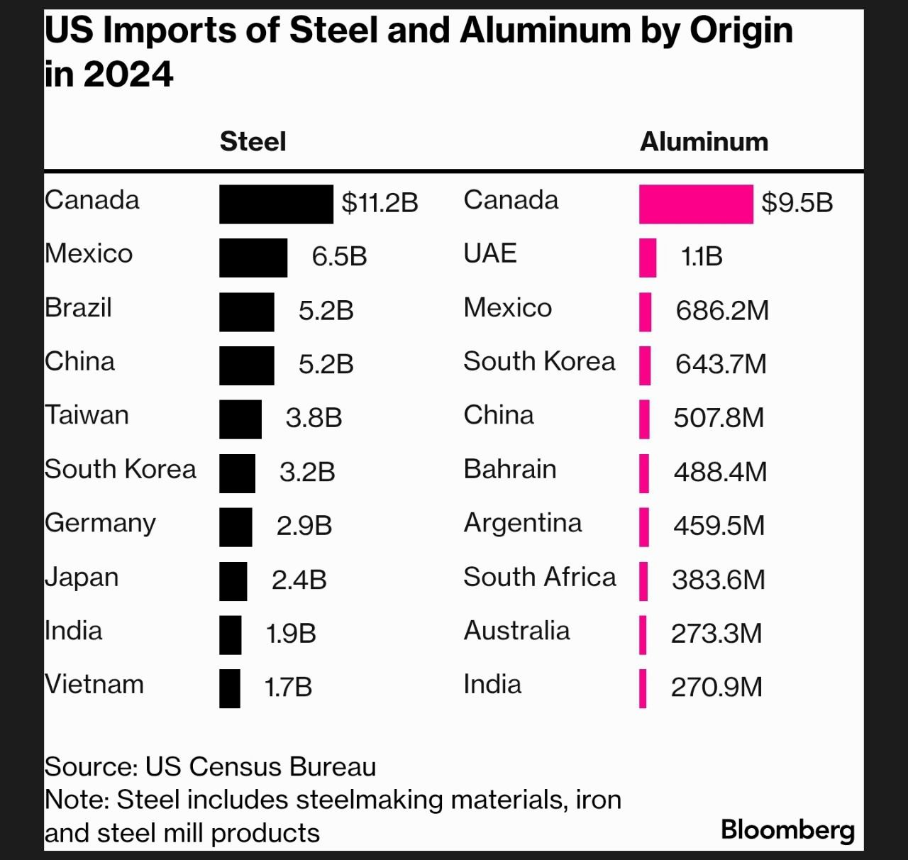 미국, 수입산 철강 및 알루미늄에 12일(오늘)부터 25% 관세 발효. 예외 또는 면제 없음