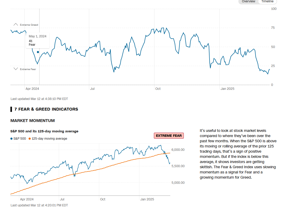 결국 물가가 안정을 보이자 공포심리가 안정을 보이며 주식시장에서는 [경기 방어주가 하락하고, 경기 민감주 등의 강세가 특징]. 그러나 장중 철강 및 알루미늄에 대해 25% 관세를 시행하자 캐나다와 EU 등은 곧바로 보복 관세를 발표하는 등 불안 심리가 확대되며 장중 지수 하락도 특징. 결국 이러한 무역 분쟁은 향후 물가에 대한 불안 또한 높여 물가 안정과 경기에 대한 불안에도 CME FEDWatch 에서는 5월 금리인하 기대가 낮아져 이제는 6월 금리인하가 진행될 것으로 전망.