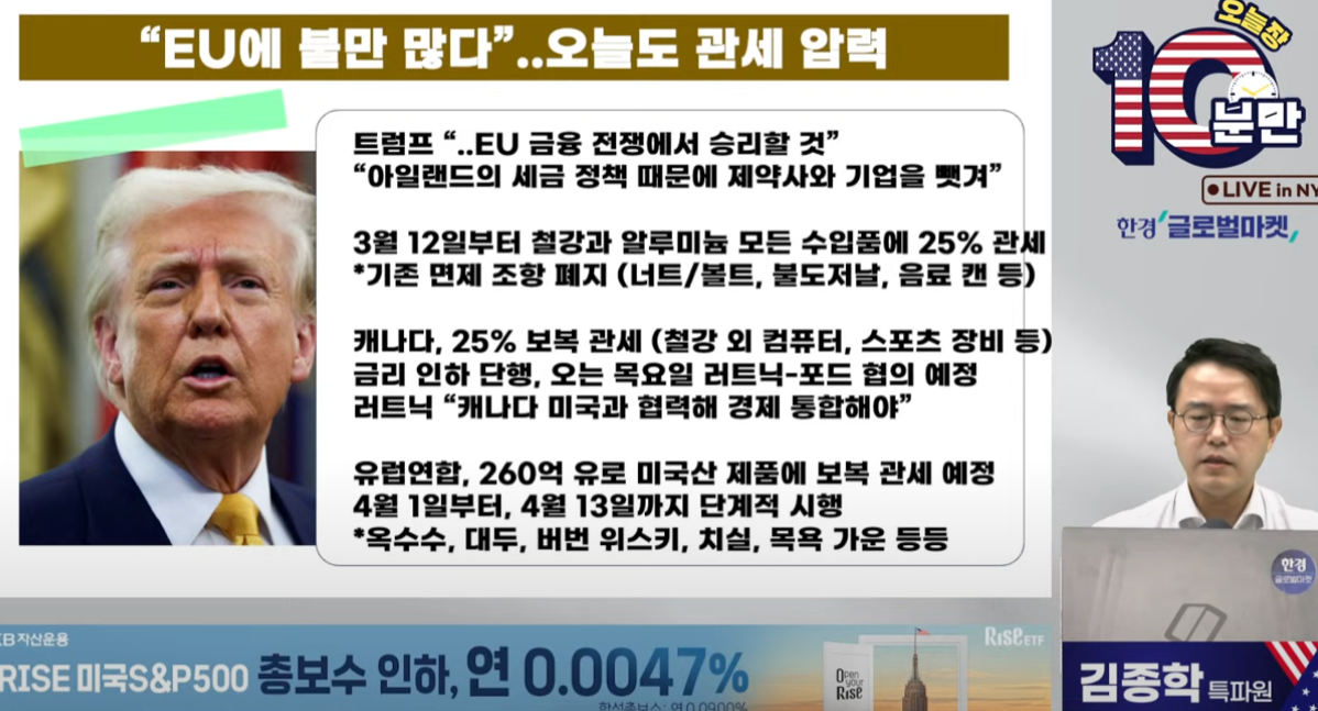 미국, 수입산 철강 및 알루미늄에 12일(오늘)부터 25% 관세 발효. 예외 또는 면제 없음