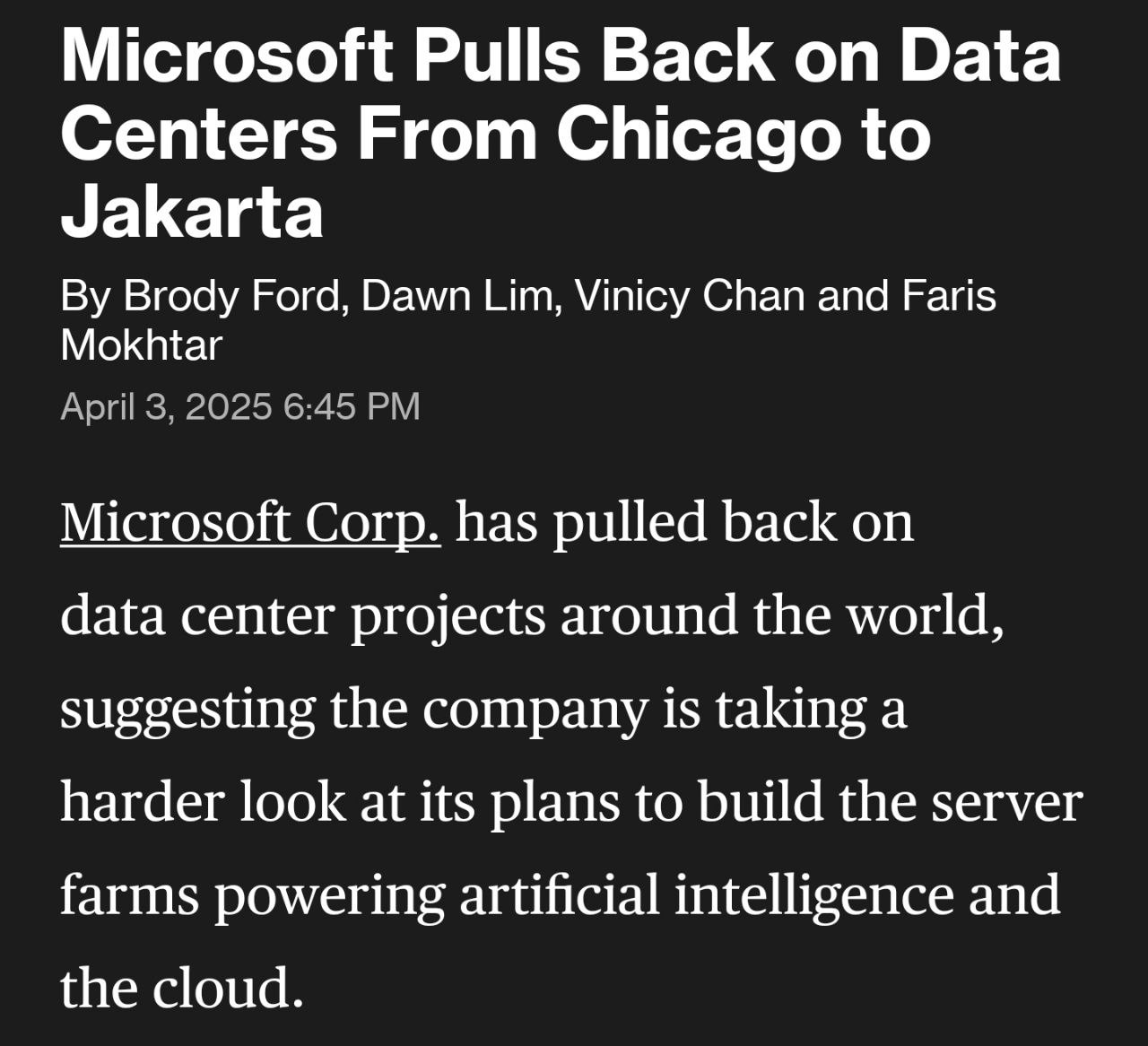 Microsoft가 최근 인도네시아, 영국, 호주, 일리노이, 노스다코타, 위스콘신 등 여러 지역의 데이터 센터 프로젝트를 중단하거나 보류 중