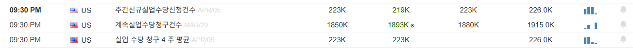 주간실업수당청구, 실업수당 청구건수는 늘었지만, 계속실업 청구는 줄면서 경기침체와는 거리가 먼 모습. 다만, 도지 영향이 아직 미반영된 것으로 시장은 보고 있는 듯. 이는 다음달에 더 급등할 수도 있는 우려 의미