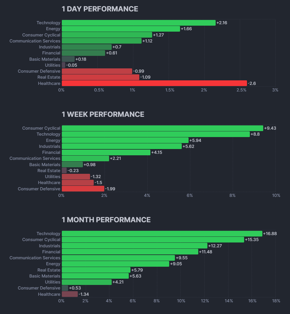 유나이티드 헬스(UNH -17.79%)는 주가 하락이 진행되자 CEO가 사임하고, 향후 전망에 불확실성으로 전망을 중단했다는 소식에 큰 폭 하락. 특히 예상보다 여전히 높은 수준으로 의료비가 유지되고 있다는 소식도 영향. CVS헬스(CVS -6.65%), 엘리번스(ELV -9.91%), 휴마나(HUM -9.48%) 등 관련 기업들도 동반 하락. 전일 트럼프의 약가 인하 등 트럼프이 발표가 예상보다 나쁘지 않다는 점에 상승 전환했던 일리이릴리(LLY -1.26%), 노보노디스크(NVO -3.45%), 머크(MRK -4.72%), J&J(JNJ -3.70%) 등 여타 제약업종이 매물 소화하며 하락.