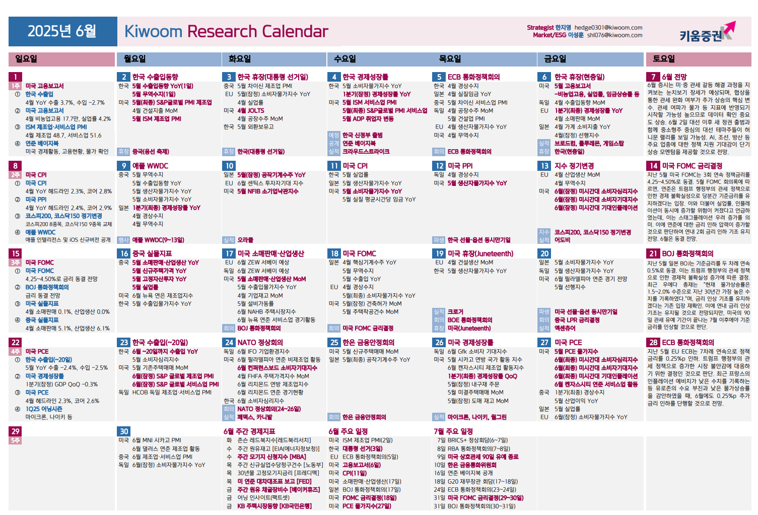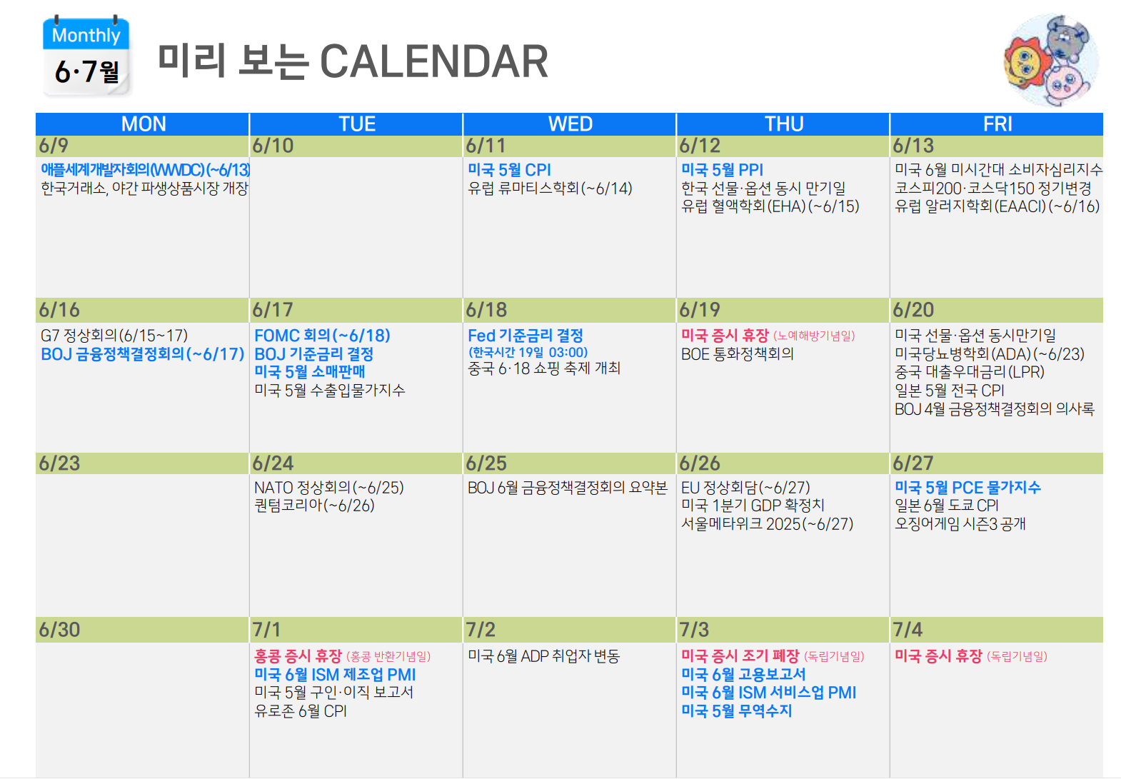 증시 주요 캘린더