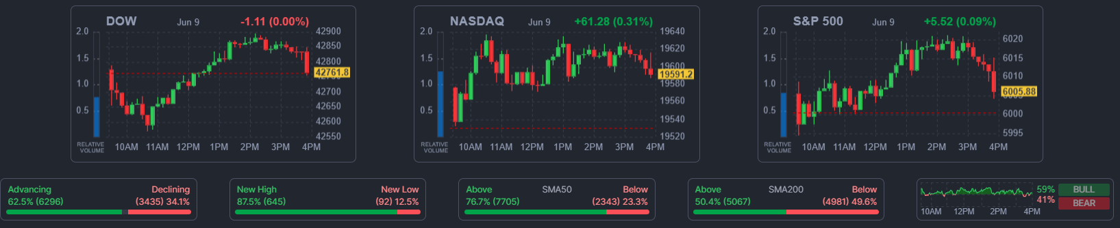 ))))))다만, 장 마감 앞두고 트럼프 발언에 테슬라(+4.55%)가 크게 상승했지만, 미-중 협상이 둘째날로 미뤄졌다는 소식에 매물 소화하며 상승분 일부 반납(다우 -0.00%, 나스닥 +0.31%, S&P500 +0.09%, 러셀2000 +0.57%, 필라델피아 반도체 지수 +1.96%)