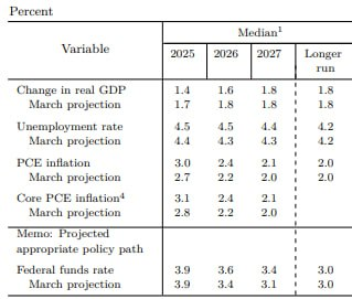 장기중립금리 중간값은 3.00%를 유지했고, 1명의 위원이 새롭게 점을 찍은 것을 제외하면 3월과 점도표 분포가 동일