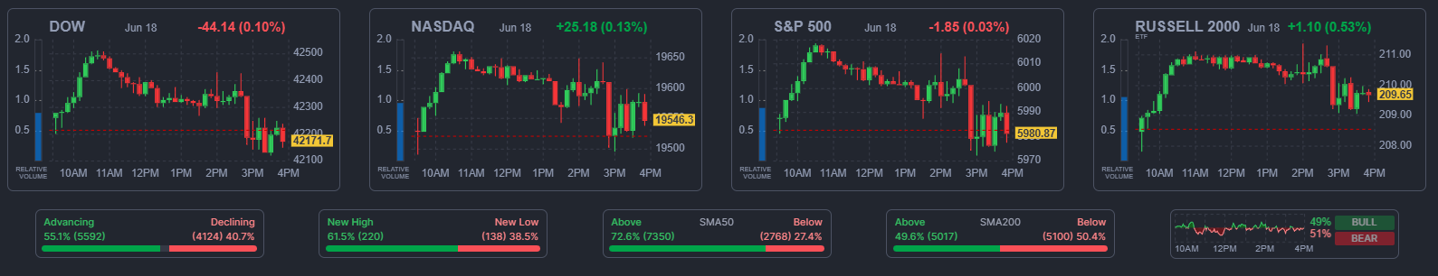 미 증시는 이란과 이스라엘 이슈가 지속됐지만, 트럼프가 이란의 미국 방문을 거론하며 협상 가능성을 언급하자 상승 전환. 특히 상원에서 스테이블코인 관련 법안이 통과되며 금융주가 상승을 주도.