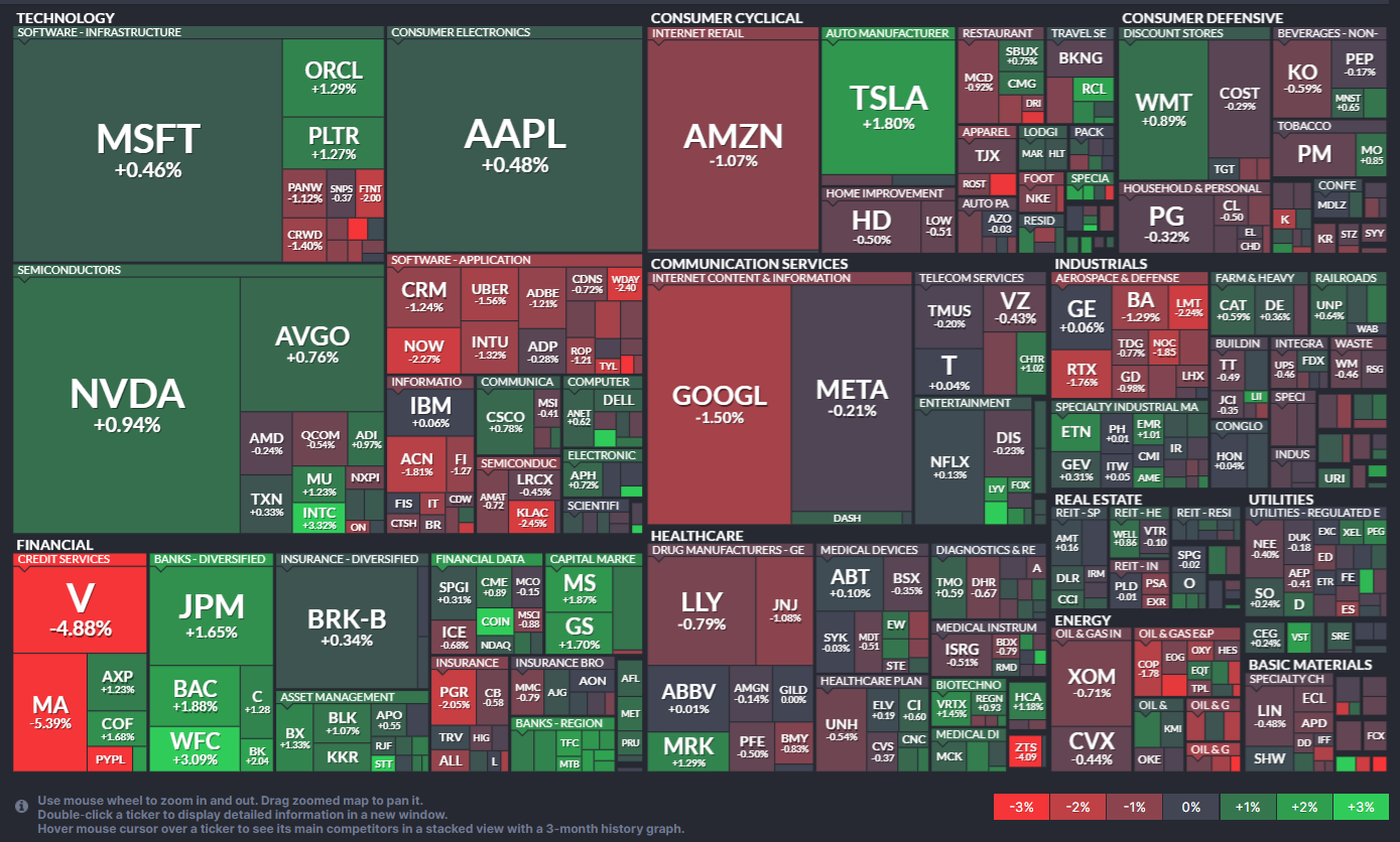 BOA(BAC +1.88%), 웰스파고(WFC +3.09%), 골드만삭스(GS +1.70%), 블랙록(BLK +1.07%): 금융주 전반 강세.