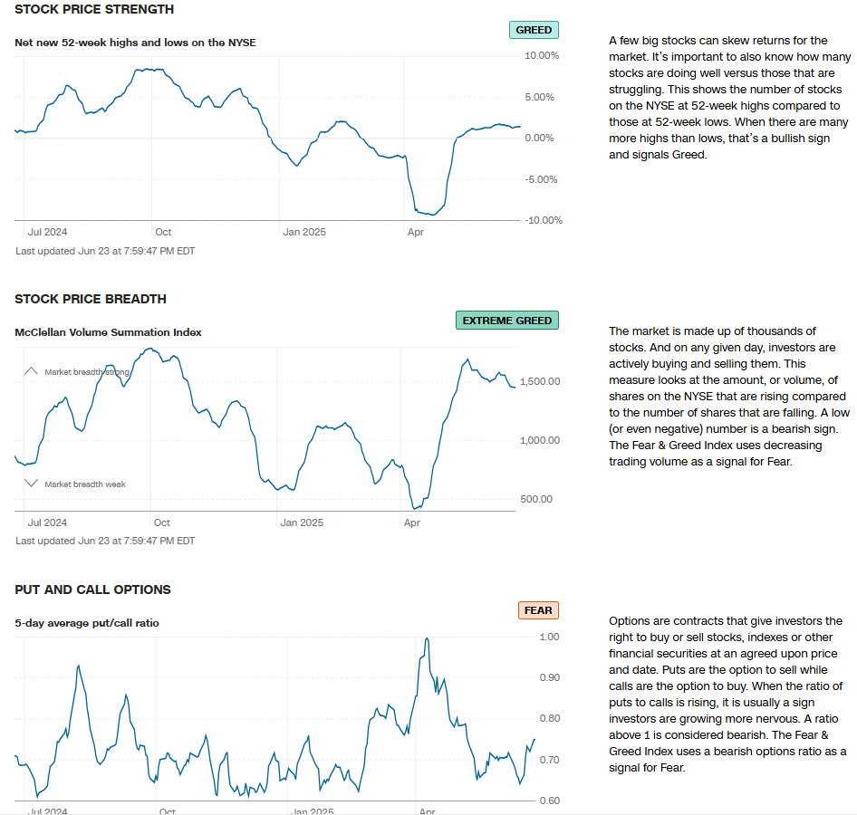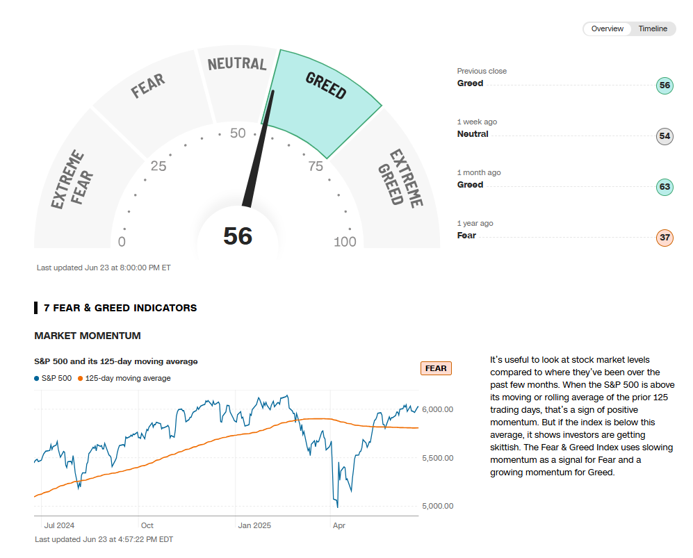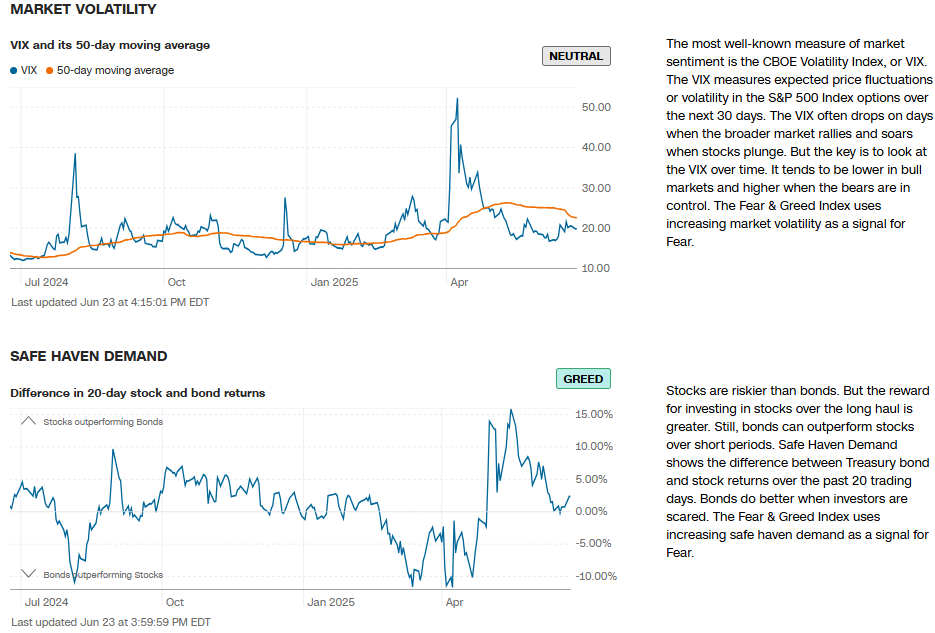 지정학적위험, 이란이 미국에 대한 보복성 조치로 카타르에 위치한 미 공군 기지에 미사일 발사. 다만 해당 공격은 사전 통보되었으며, 미사일 14 발 중 13 발은 격추 성공. 그 외 1 발은 비위험 구역으로 발사되어 사상자 전무. 트럼프는 이란의 대응이 “매우 약하다” 논평.
