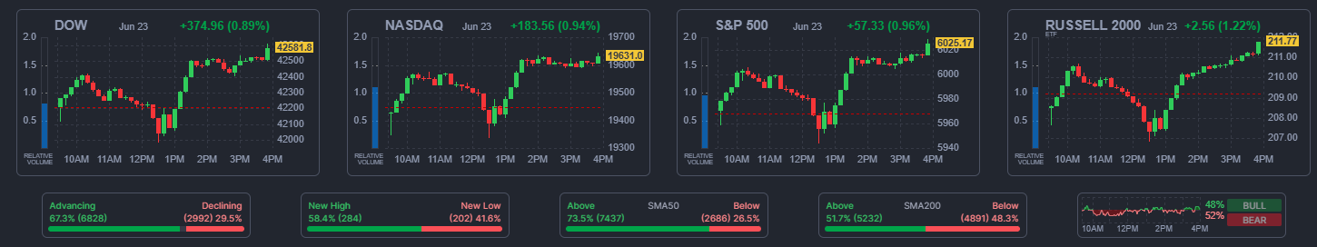 트럼프가 이스라엘과 이란이 완전한 휴전에 합의했다고 발표. 이스라엘과 이란 양국이 ‘12일 전쟁’이라고 불리는 전쟁을 끝낼 수 있는 용기와 지성을 가진 것을 축하한다고 언급. 반스 부통령은 이란에 대한 공격은 상징성이라고 주장한 가운데 임무는 성공했다고 주장.
