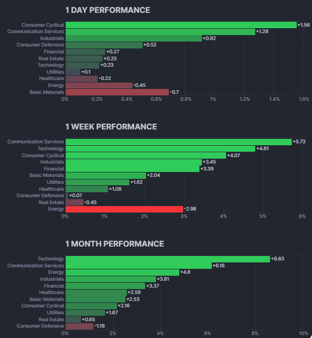 Nike의 깜짝 실적 발표로 소비재 섹터가 강한 상승세를 보였습니다. 브랜드 리뉴얼과 비용 절감 효과에 대한 기대감이 소비재 전반으로 확산되었습니다