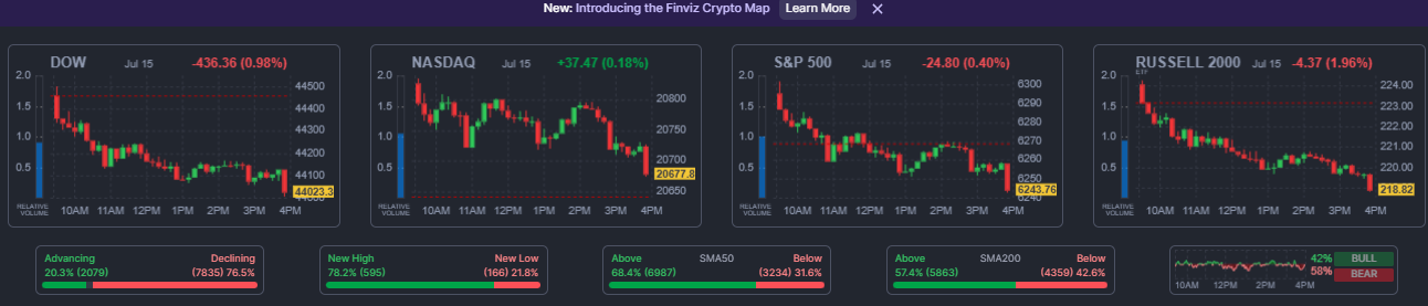- 다우존스 산업평균지수: 44,023.29 (-436.36p, -0.98%)