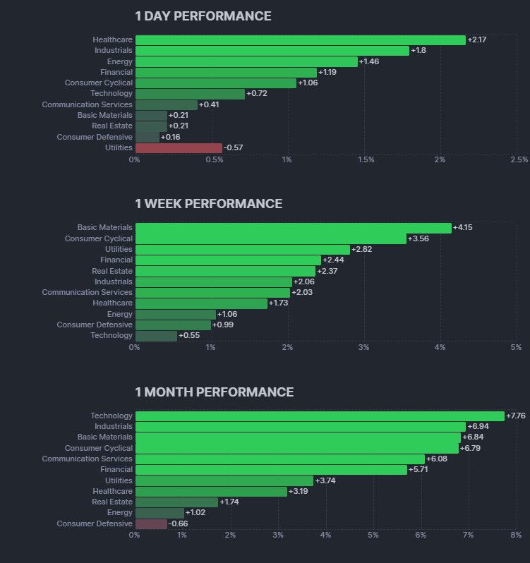금융 섹터가 국채 수익률 상승과 무역협상 진전으로 강세를 보였습니다. 특히 대형 은행들이 순이자마진 개선 기대감으로 상승했습니다.