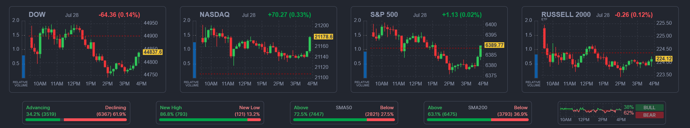 - S&P 500: 6,389.77 (+1.13p, +0.02%) *사상 최고치