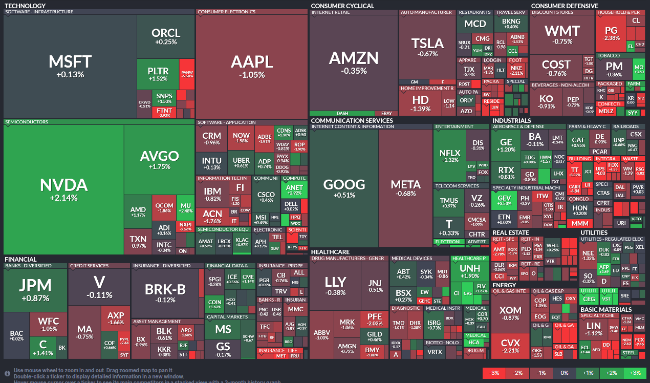 - S&P 500: 6,362.90 (-7.96p, -0.12%)