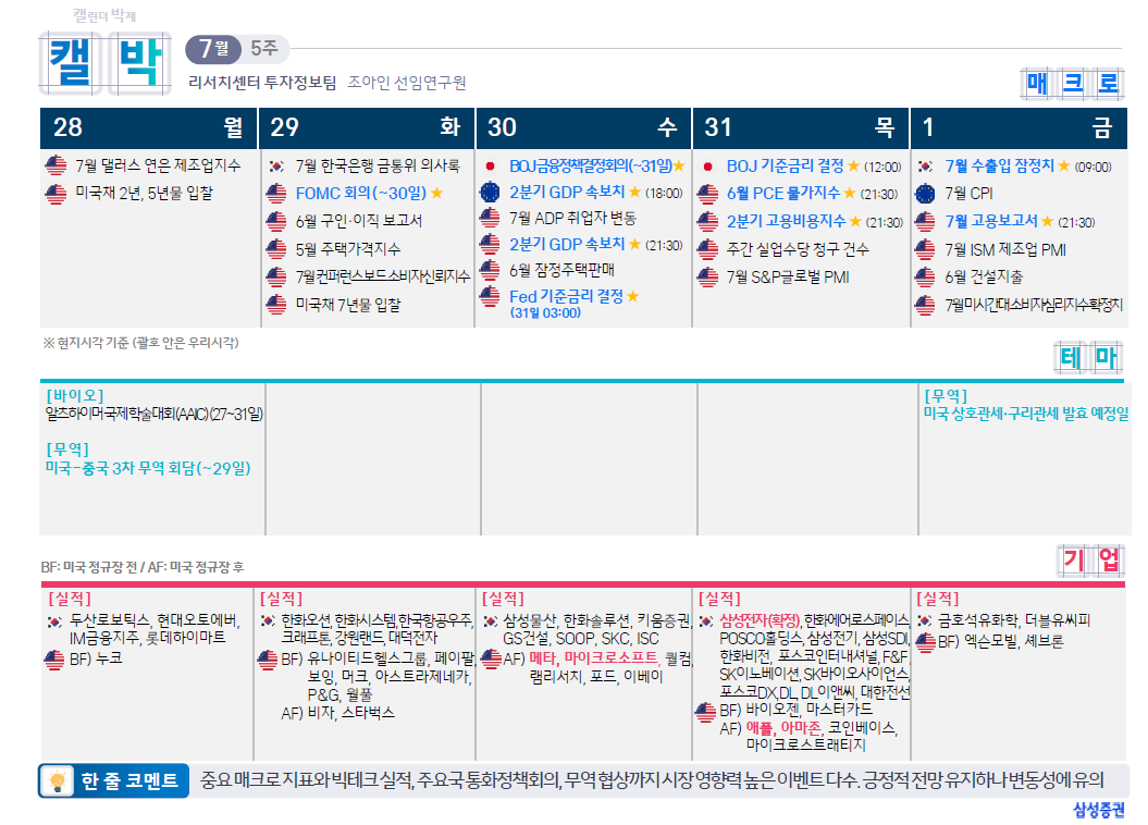 7. 다음 주 주요 경제지표 및 실적 발표 일정
