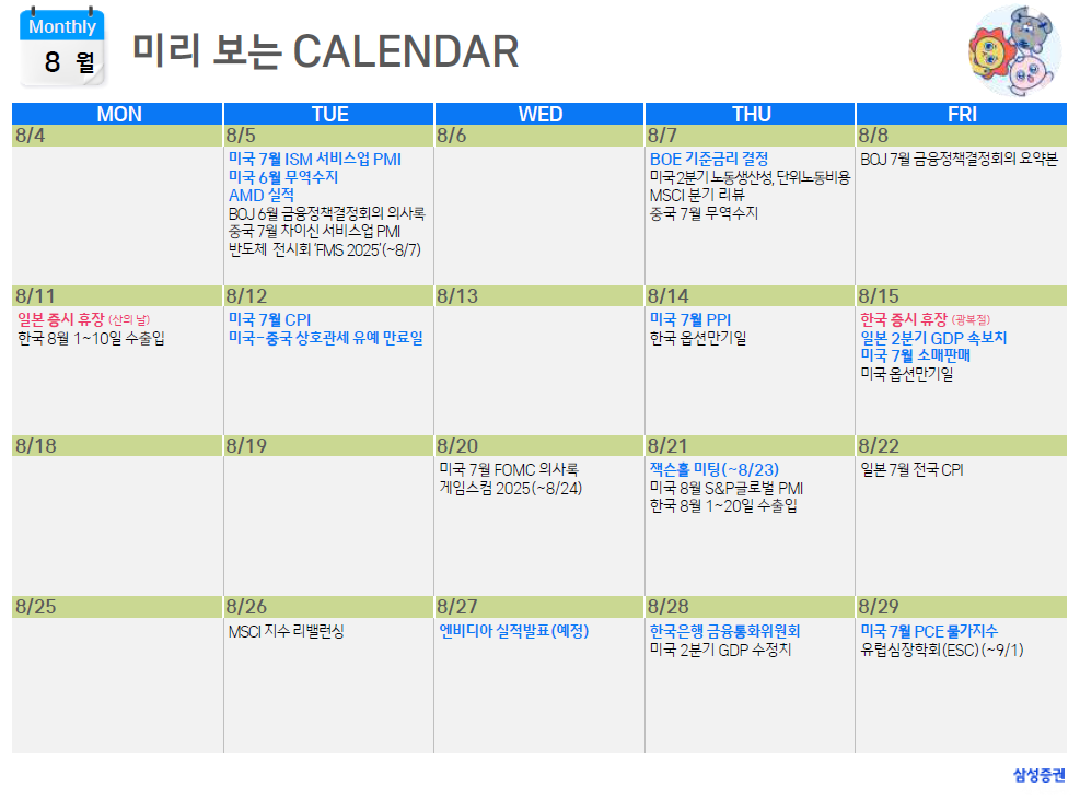 - 7월 한 달간 S&P 500 +2.3%, 나스닥 +3.7% 상승