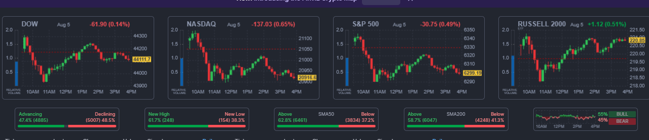 반도체 관세 예고에도 불구하고 팔란티어의 강력한 실적으로 일부 상쇄되었습니다. 그러나 전반적으로는 관세 우려와 경기둔화 우려로 약세를 보였습니다.