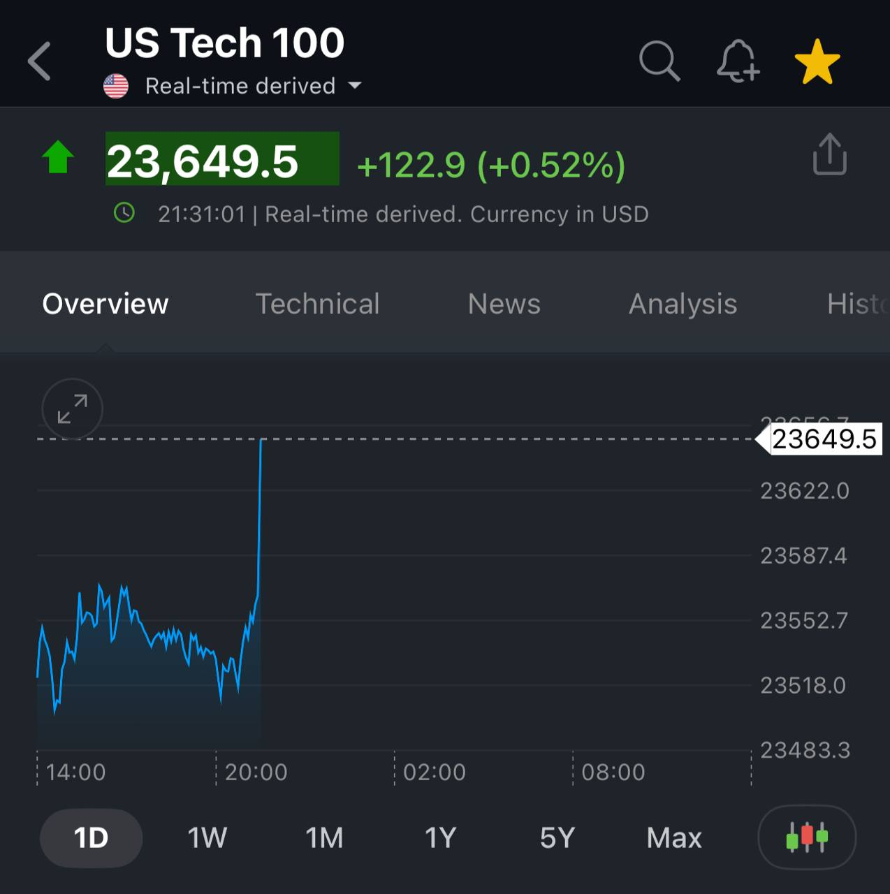 - 나스닥 종합: 21,681.90 (+296.50p, +1.39%) 사상 최고치
