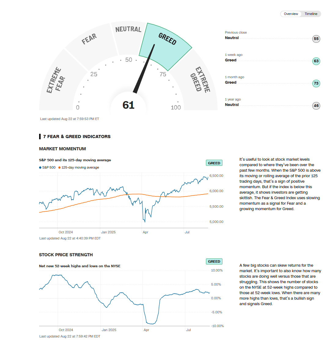 - ▒ 시장 센티먼트 : [개장 전] 중립 → (잭슨홀) 포모 → [개장 후] 포모