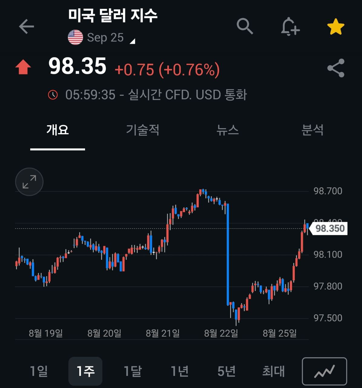 이에 환율(달러인덱스)도 장중 +1% 가까이 상승하며 지난 잭슨 홀 미팅 당시 낙폭 대부분 만회 → 금리 인하 기대감 약화