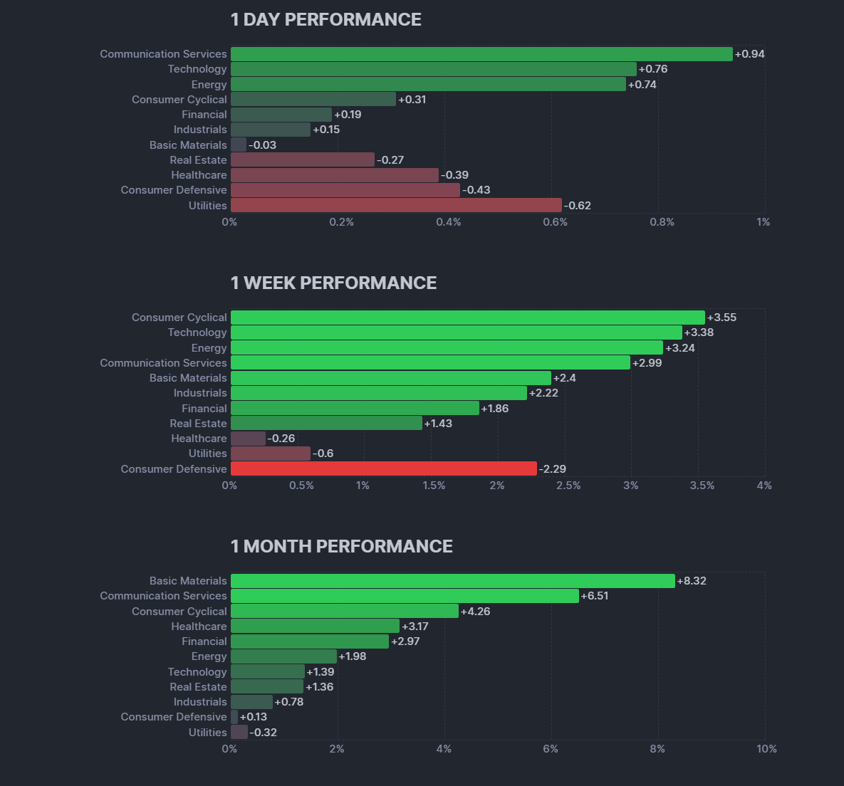 오늘 최고 성과를 기록한 섹터로, 원유 가격 상승과 함께 석유 및 가스 관련 주식들이 상승세를 보였습니다.