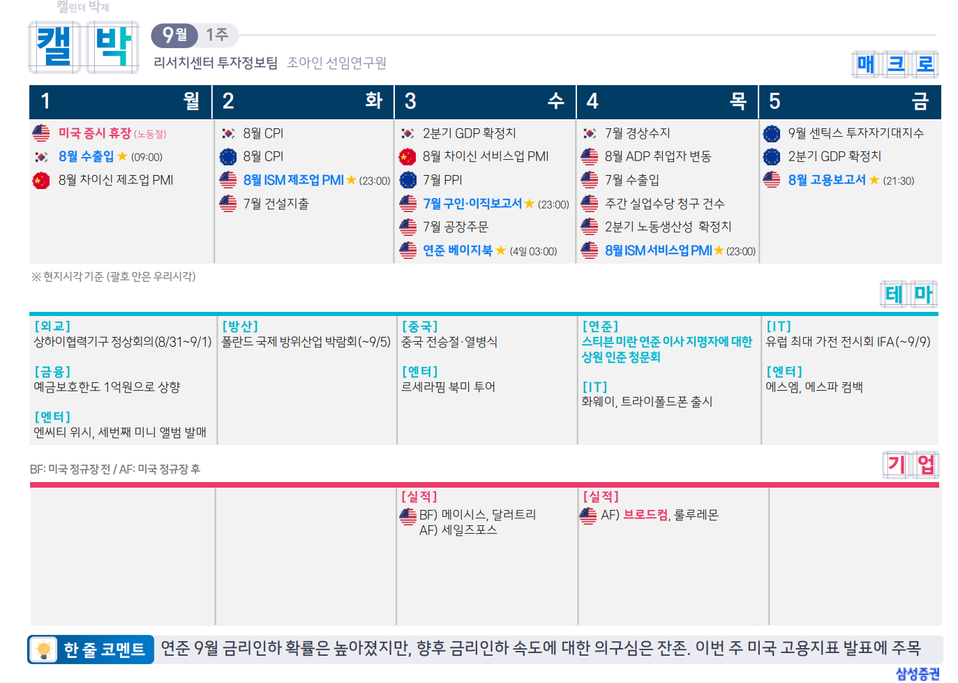 10. 다음 주 주요 일정 (2025년 9월 3일~6일)