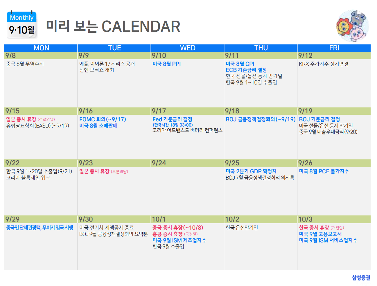 - 9월 5일: 옵션 만료일 - 대량 거래 예상